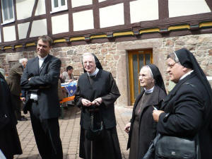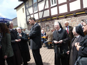 Mit den Worten "Lasst uns miteinander...." feierte die St. Vitusgemeinde am Sonntag, den 15.06.2008 ihr Pfarrfest. Um 10:00 Uhr wurden die Feierlichkeiten mit einem Festgottesdienst "eingeläutet". Gegen 11:00 Uhr begrüßte Pfarrer Matthäi dann die Gäste im prall gefüllten Festzelt, das wieder im Pfarrhof aufgebaut war. Als ganz besondere Überraschungsgäste konnte die Pfarrgemeinde die "armen Schwestern vom Hl. Franziskus“ begrüßen, die viele Jahre bei uns in Bad Salzschlirf im Josefsheim gewirkt haben. Wir erinnern uns gerne an die Zeiten mit Schw. Adelhard Maria, Schw. Maria Alfonsia, Schw. Evarista mit dem Elektroauto, Schw. Engratia, Schw. Karla Maria (Siehe dazu auch in unserem Arichiv ). Bei gutem Bier und leckerer Bratwurst umrahmte die Musikkapelle Intakt die Festlichkeiten mit Ihren Liedern. Zum Nachmittag hin gab es dann Kaffee und Kuchen. Zwischenzeitlich konnte man auch mit einem Los sein Glück probieren. Insgesamt kann man auch für 2008 wieder von einem gelungenen Fest sprechen bei dem jedem Besucher, ob Gast oder Einheimischer etwas geboten wurde. An dieser Stelle sei auch noch einmal ein "Herzliches Dankeschön" an die vielen Helfer ausgesprochen, die dieses Fest erst ermöglicht haben. Nachfolgend ein paar Fotos.