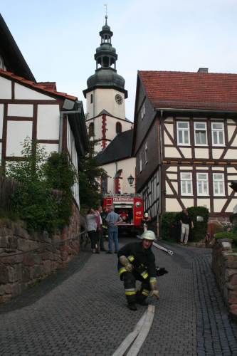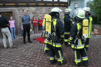 Eine Feuerwehrübung ganz besonderer Art präsentierte die Freiwillige Feuerwehr Bad Salzschlirf am 18. Juni 2007 der Gemeinde. Punkt 19:30 Uhr ging die Sirene und die Feuerwehr rückte zum Löschen aus. Brandort sollte die Pfarrkirche in Bad Salzschlirf sein. Gott sei dank handelte es sich nur um eine Übung und so konnten alle Zuschauer dem Ganzen gelassen zusehen. Die Übung hatte ihren Ursprung im Sturm Kyrill im Januar 2007. Damals hatte die Feuerwehr das durch den Sturm beschädigte Dach repariert und als Dankeschön hat Herr Pfarrer Matthäi die Feuerwehr zu einem Grillessen am Tag nach dem Pfarrfest eingeladen. Die Feuerwehr hat nun das Grillfest mit einer Übung umrahmt. Anschließend wurde dann im Festzelt weiter gelöscht.