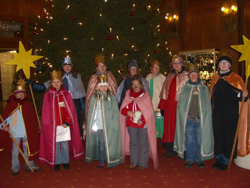 Unter diesem Motto machten sich in unserer Pfarrei St. Vitus am 5. Januar 29 Kinder mit 16 Betreuern auf und besuchten über 350 Haushalte in Bad Salzschlirf und Umgebung. Pfarrer Matthäi hatte die Sternsinger am Vormittag im Rahmen einer Andacht in der Kirche gesegnet und ausgesendet. Dann zogen die Kinder in sieben Gruppen durch den Ort, sangen in den Häusern und schrieben ihren Segensspruch mit Kreide an die Haustüren. Anschließend ging es zurück ins Pfarrheim, wo es heiße Getränke und Würstchen für die Dreikönigsschar gab, die in diesem Jahr mit Wind, Regen und Kälte bei ihren Gang durch den Ort kämpfen musste. Umso mehr erfreut waren die Kinder über die für sie gespendeten Süßigkeiten, die sie als Belohnung von den Leuten erhielten. Der Gelderlös der Sammelaktion kommt in diesem Jahr wieder dem ugandischen Schulprojekt von Pfarrer Biriija Rogers Atwooki zugute.