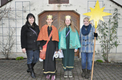 Nur 17 Kinder konnten in diesem Jahr in unserer Pfarrei für die aktuelle Sternsingeraktion gewonnen werden, die unter dem Motto stand „Klopft an Türen, pocht auf Rechte“. Doch diese 17 Kinder im Alter zwischen 8 und 18 Jahren und ihre Betreuer absolvierten ein gewaltiges Hausbesuchs-Programm und brachten Gottes Segen in sechs Gruppen in über 300 Haushalte der Gemeinde und selbst bis nach Ützhausen. Dabei sammelten die fleißige Dreikönigsschar 3270,90 €, die über das Kindermissionswerk an benachteiligte Kinder in der ganzen Welt gehen. Den ganzen Samstag über waren die Kinder unterwegs, mal bei Sonnenschein, aber auch bei Regen, nachdem sie von Pfarrer Wajda im Rahmen einer Andacht in der Pfarrkirche ausgesandt worden waren. Zur Belohnung konnte die bunte Sternsingerschar auch viele Süßigkeiten einheimschen, die unter den Kindern verteilt wurden. Im Pfarrheim gab es noch Würstchen, Brötchen und heiße Getränke zur Stärkung für die kleinen Botschafter Gottes.