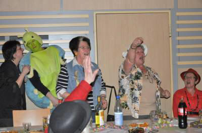 Der Karnevalsverein Bad Salzschlirf besuchte die kfd-Fastnacht. Prinz Uwe, „der Freeme vom Schlirfer Plateau“ und sein Team verteilten Orden und hatten als Geschenk einen Tanz der Junioren-Garde im Gepäck. Auch die „Amazonen.de“ beteiligten sich am Programm mit einem vergnüglichen Rückblick auf die Highlights der 1125-Jahr-Feier des Badeortes. Als Überraschungsgast brachte der Verwandlungskünstler Stefan Dietrich den Saal mit seiner rasant wechselnden Darstellung von vielen Stars zum Toben.