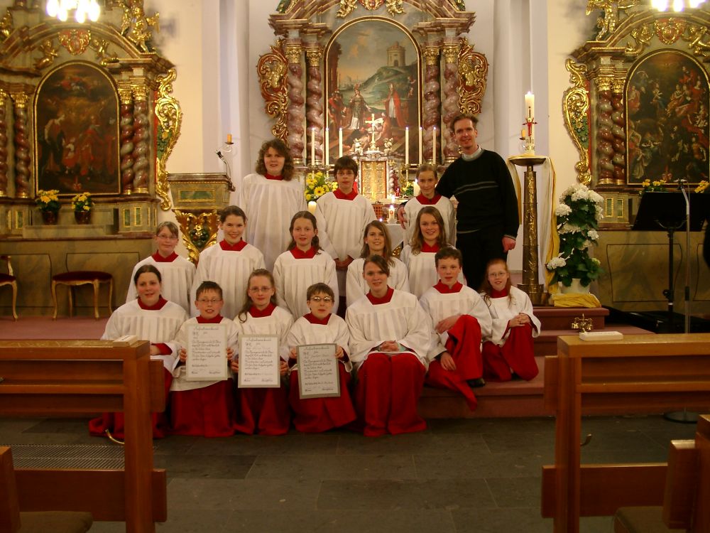 Nach mehrmonatiger Vorbereitungszeit, wurden am 27.05.06 drei neue Ministranten in ihren Dienst aufgenommen. Die Übungen der neuen Minis leiteten die beiden Oberminis Carolin Blum und Cordelia Reus.