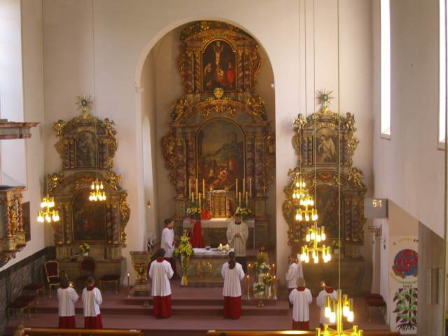 Das diesjährige Pfarrfest startete mit dem Festgottesdienst, den der Singkreis St. Vitus mitgestaltete. Anschließend traf man sich zum gemütlichen Zusammensein im Festzelt. Pfarrer Andreas Matthäi begrüßte die Gäste, die zum Frühschoppen von der Blaskapelle InTakt unterhalten wurden. Für die Kinder gab es am Nachmittag Spiele rund ums Gotteshaus, Kaffee und selbstgebackener Kuchen sowie Grillspezialitäten lockten den Gaumen, eine Tombola bot viele Preise. Die Pfarrbücherei präsentierte ihre Neuanschaffungen: Hörbücher und aktuelle Literatur. Die Blicke aller zog Kaplan Robert Wajda auf sich, der sich als Nachfolger von Pfarrer Matthäi als baldiger neuer Pfarrer unserer Vitusgemeinde vorstellte