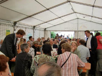 Pfarrgemeinderatssprecher Martin Post erläuterte zur Kaffeezeit im Festzelt, dass es viele Gründe gegeben habe, die Pfarrbücherei, die etwa 50 Jahre lang existiert habe, zu schließen. Trotz aller engagierten Bemühungen des Büchereiteams, die Einrichtung zu attraktivieren und mehr Nutzer zu gewinnen, war die Besucherzahl so stark zurückgegangen, dass der Verwaltungsrat beschlossen hatte, die Pfarrbücherei zu schließen und keine finanziellen Mittel mehr dafür aufzuwenden. Die dringend notwendige Renovierung des Büchereiraumes habe der Pfarrgemeinderat schließlich zum Anlass genommen, die Bücher auf einem Bücherbasar gegen Spenden abzugeben. Ein Teil der Kinderbücher wanderte bereits zuvor in die Kindertagesstätte St. Michael und in die Bonifatius-Schule.
