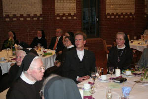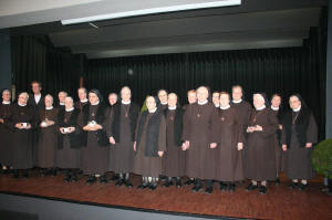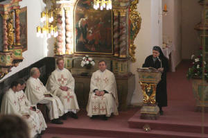 Viele Bad Salzschlirfer folgten der Einladung und kamen zur Verabschiedung der letzten „armen Schwestern vom Hl. Franziskus“. Der Konvent wird aufgelöst, die letzten fünf Ordensschwestern werden von anderen Konventen aufgenommen. Bei einer Eucharistiefeier und einem Empfang im Kulturkessel am Sonntag, 12. November, gab es die Möglichkeit, den Schwestern für ihr über 63jähriges Wirken in unserem Ort zu danken und persönlich Abschied zu nehmen. Mit einer Eucharistiefeier in der Hauskapelle des St. Josefsheimes verabschiedeten sich die Schwestern am Dienstag, 15. 11. 06 von dem Seniorenheim. Den Gottesdienst zelebrierte Pfarrer Matthäi, der in seiner Predigt den heiligen Josef als Beispiel für Gottes Wirken nannte. Von Josef seien seine Träume bekannt; diese Träume seien eine Botschaft Gottes an die Menschen. Gott habe sich mit Josef als heimatlosem Menschen verbunden. Gott habe gezeigt, dass er nicht an ein Land und ein Volk gebunden sei. Josef habe Gott als Begleiter erfahren. Auch die Franziskanerinnen hatten sich in ihrem Orden dazu bereit erklärt, dorthin zu gehen, wohin Gott sie schickt. Eine Zeitlang hatten sie im Josefsheim ihren Platz gefunden, jetzt seien sie wieder bereit, aufzubrechen. Als Christen glauben wir, so Matthäi, dass Gott mit geht. Er wünschte den Schwestern und der Familie Chmielorz, die das Josefsheim weiter betreibt, Gottes Segen auf ihren weiteren Wegen. Zum Abschied schenkte der Pfarrer den Schwestern eine kleine Bronze-Marienstatue mit Jesuskind. Ihren Dank für die langjährige gute Nachbarschaft sagte Eva Reus vom Hotel-Restaurant Söderberg und verabschiedete sich von den Schwestern mit Rosen. Mit den Mitarbeitern und Bewohnern des Hauses wurde am Mittag noch eine Abschiedsfeier veranstaltet.